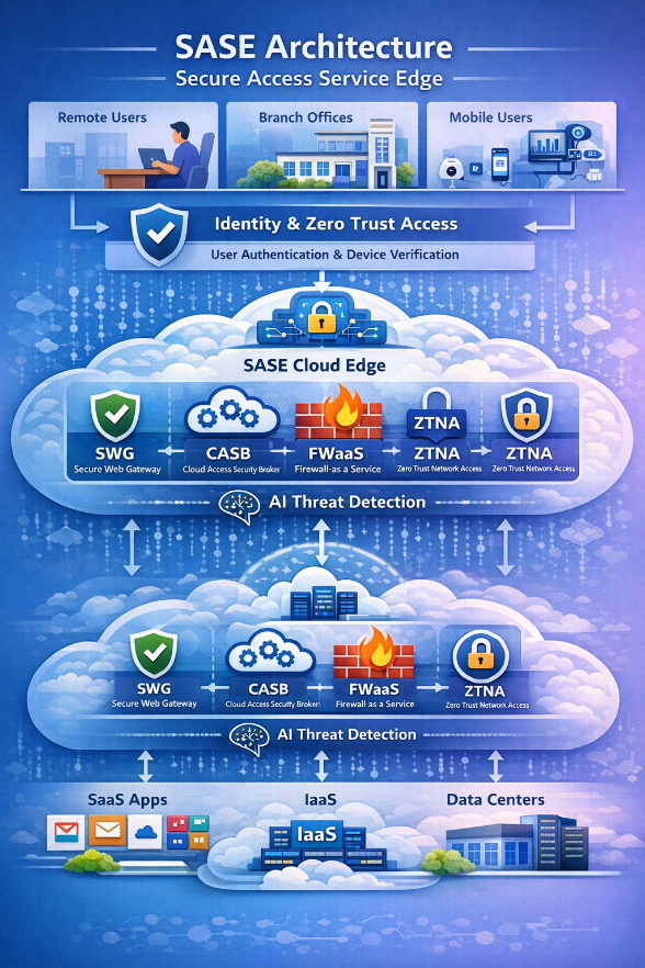 This is why SASE for Small and Mid-Size Businesses has emerged as one of the most important cybersecurity strategies for 2026. Secure Access Service Edge integrates networking and security capabilities into a single cloud-delivered platform designed to protect distributed workforces and cloud applications.