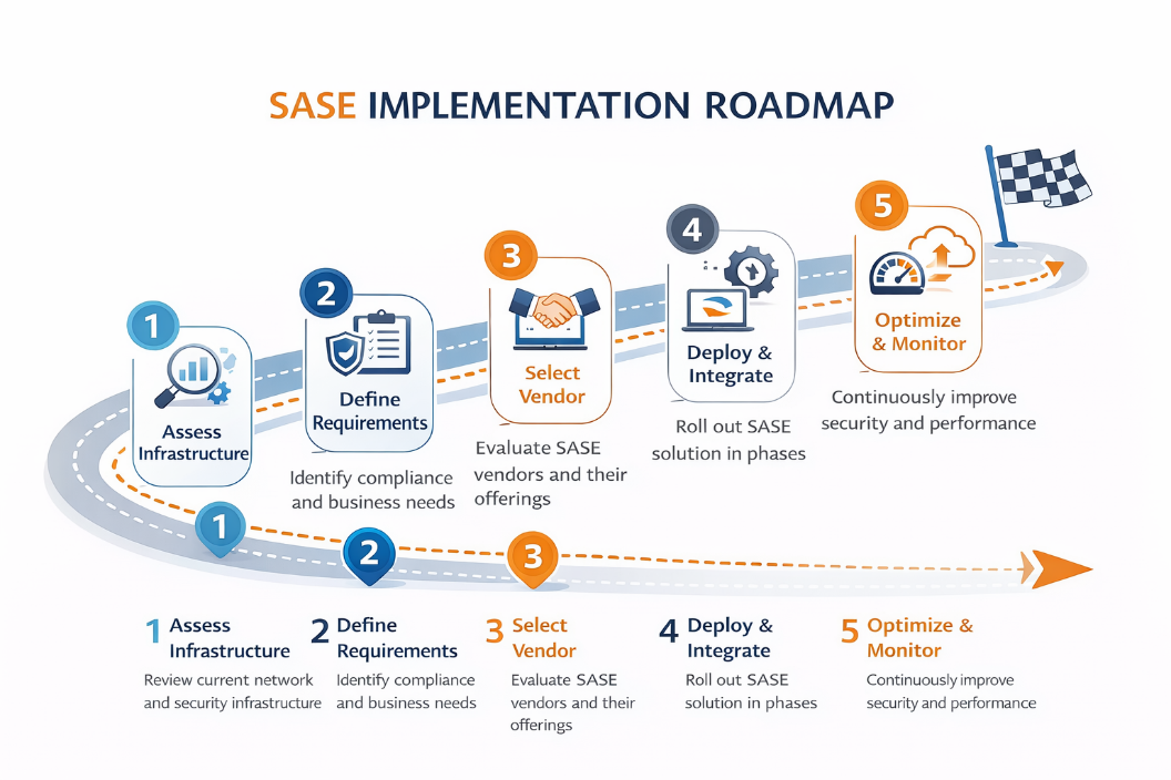 The first question that should be posed by organizations before embarking on SASE is; Is their existing network infrastructure prepared to make this transition? The process would usually start by analyzing current IT architecture, IT security tools and access controls in order to detect vulnerabilities and gaps in operations. Companies also need to establish regulatory requirements and data security needs, as standards, such as GDPR or PCI DSS, tend to affect cybersecurity policies. The next significant step is the selection of the appropriate SASE vendor - one who has powerful platform features, easy integrations, and global infrastructures.