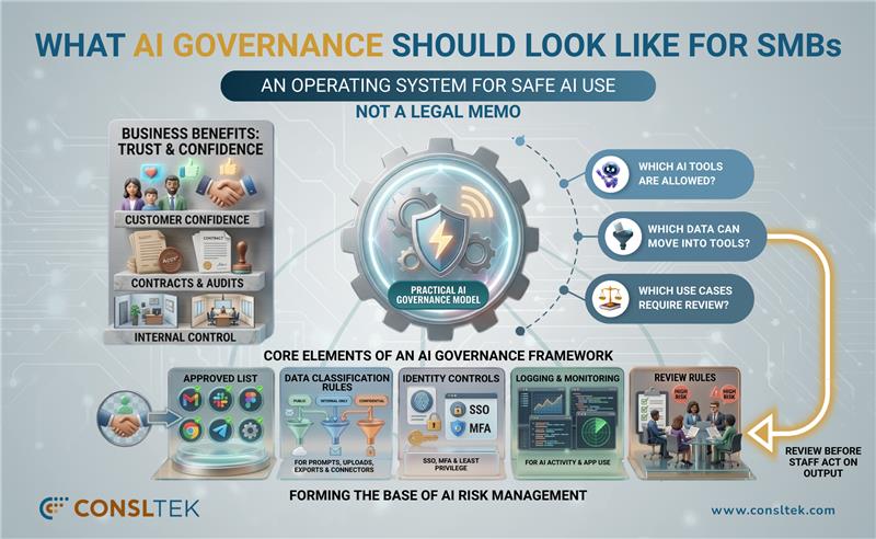 AI governance SMB teams need a model that is simple enough to run and strong enough to hold up under real business pressure. Governance should not feel like a legal memo. It should feel like an operating system for safe AI use.